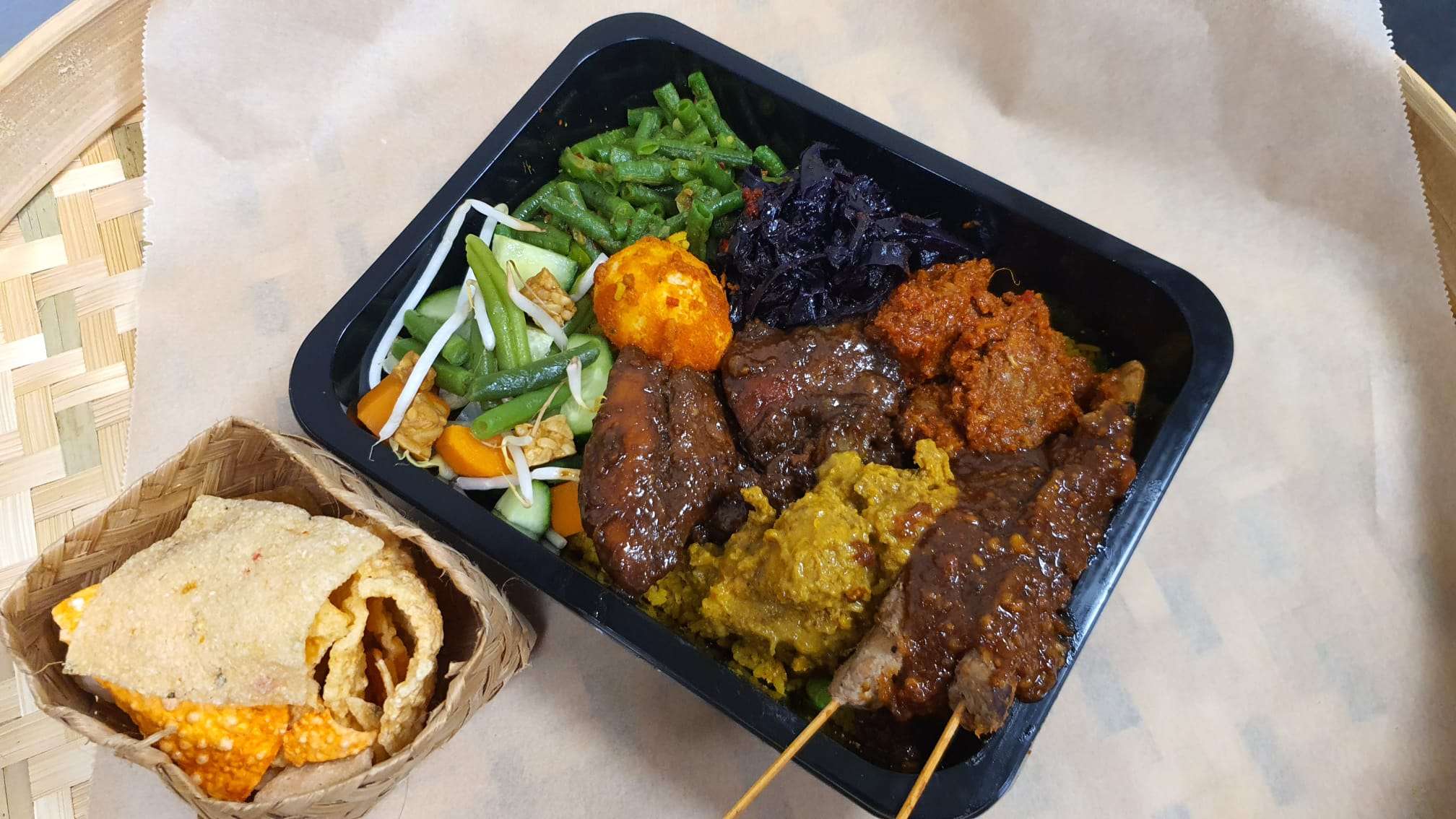 Kies uit: Rendang padang, Semoor daging, Daging rudjak, Rendang mild